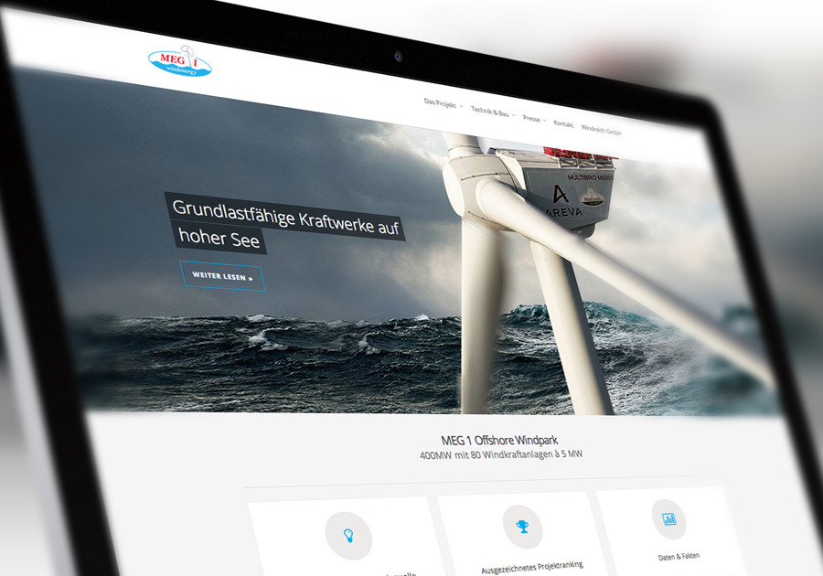 Screenshot from our latest Website Redesign for Offshore Windfarm MEG1 in the German North Sea. The Website is based on Wordpress and fully responsive for mobile devices like iPhone or iPad.