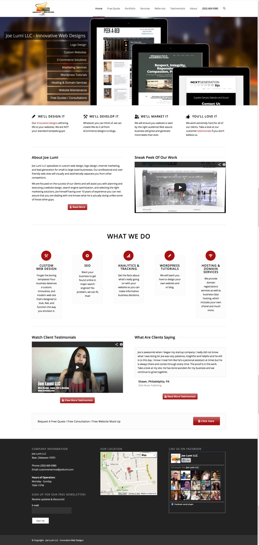 We are focused on the success of our clients and will assist you with planning and executing a website design, search engine optimization, and selecting the right marketing solutions. Joe himself having over 10 years of experience you can rest assure that you are dealing with one knows what he is actually doing unlike some of those other guys.