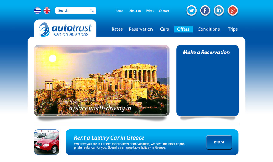 This is the homepage of AutoTrust Car Rental website in Athens, Greece. A custom website design work by inWEB.AL Web Design Studio, in Tirana, Albania - http://www.inweb.al