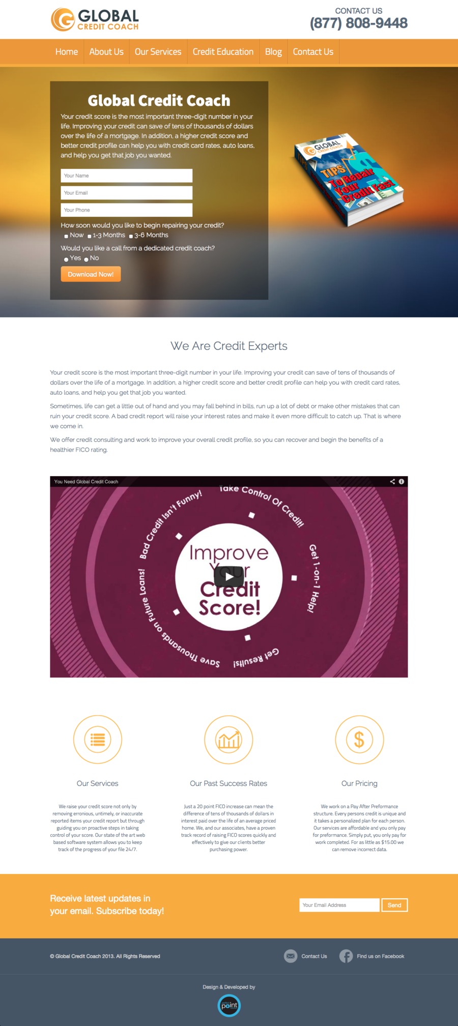Recent redesign for miamicreditrepaircompany.com -- fully responsive CSS, custom Wordpress template, API integration to CRM and foundations for SEO