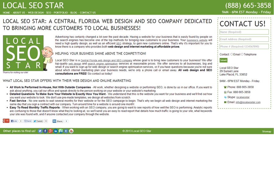 Local SEO Star is a Central Florida web design and SEO company whose goal is to bring new customers to your business! We offer top-quality web design and search engine optimization services at reasonable prices. We offer services to all businesses, big and small. If you want to sign up for web design or search engine optimization services, or if you have questions because you're not sure about which internet marketing plan your business needs, we're only a phone call or email away. All web design and SEO consultations are FREE! So contact us today!