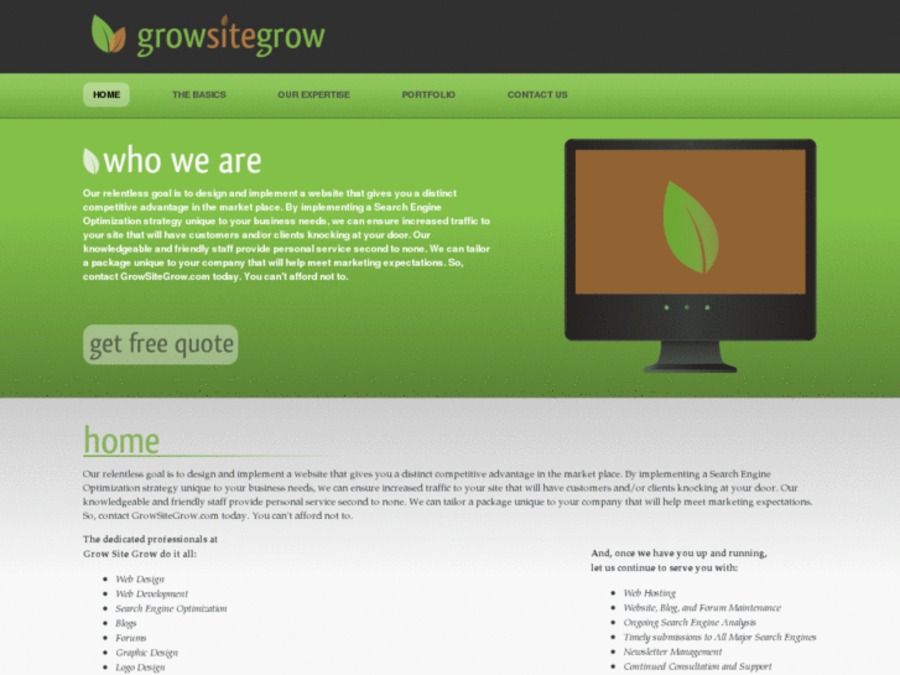 Our relentless goal is to design and implement a website that gives you a distinct competitive advantage in the market place. By implementing a Search Engine Optimization strategy unique to your business needs, we can ensure increased traffic to your site that will have customers and/or clients knocking at your door. Our knowledgeable and friendly staff provide personal service second to none. We can tailor a package unique to your company that will help meet marketing expectations. So, contact GrowSiteGrow.com today. You can't afford not to.