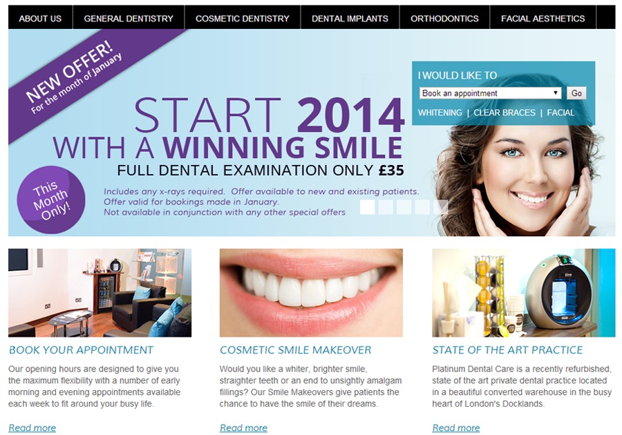 Platinum Dental Care required a web programmer, graphic design artists and SEO consultant to give their web presence a 'fresh' up to date feel. Web development took precisely two weeks with a £500 budget.