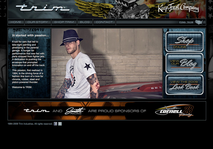 TRIM fabricates premium apparel, bags and accessories inspired by iconic, all-American hot rods. Big Wheel is responsible for Trim's web presence, e-commerce solution, and fulfillment.