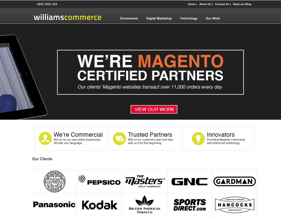 Williams Commerce is a web design and digital marketing company based in Leicester, UK. With Magento Certified Developers in the team, along with graphic designers, project managers and search marketing specialists, Williams have a wealth of experience in creating attractive, functional and transactional ecommerce websites. In particular, the company specialise in building, repairing and maintaining sites on the Magento ecommerce platform. The company have worked with clients from a range of sectors, from fashion to gardening, from wholesalers to restaurants.