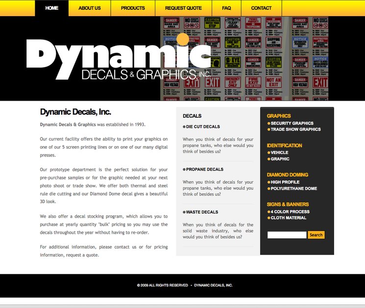 This is a screenshot from my latest project for an industrial graphic decal supplier.