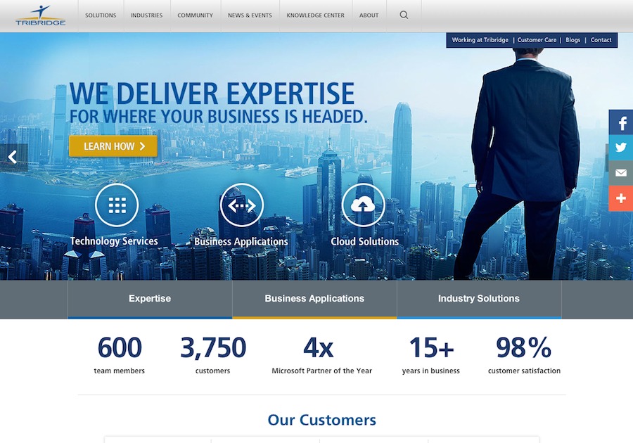 After four years since the last website redesign and several acquisitions later, the Tribridge marketing team has grown and evolved. They are now handling hundreds of marketing assets, hosting dozens of events each week and managing a very sophisticated lead generation model – for multiple brands. The website was reaching it’s capacity for marketing effectiveness, so a complete overhaul was on the top of the list for 2013 initiatives.