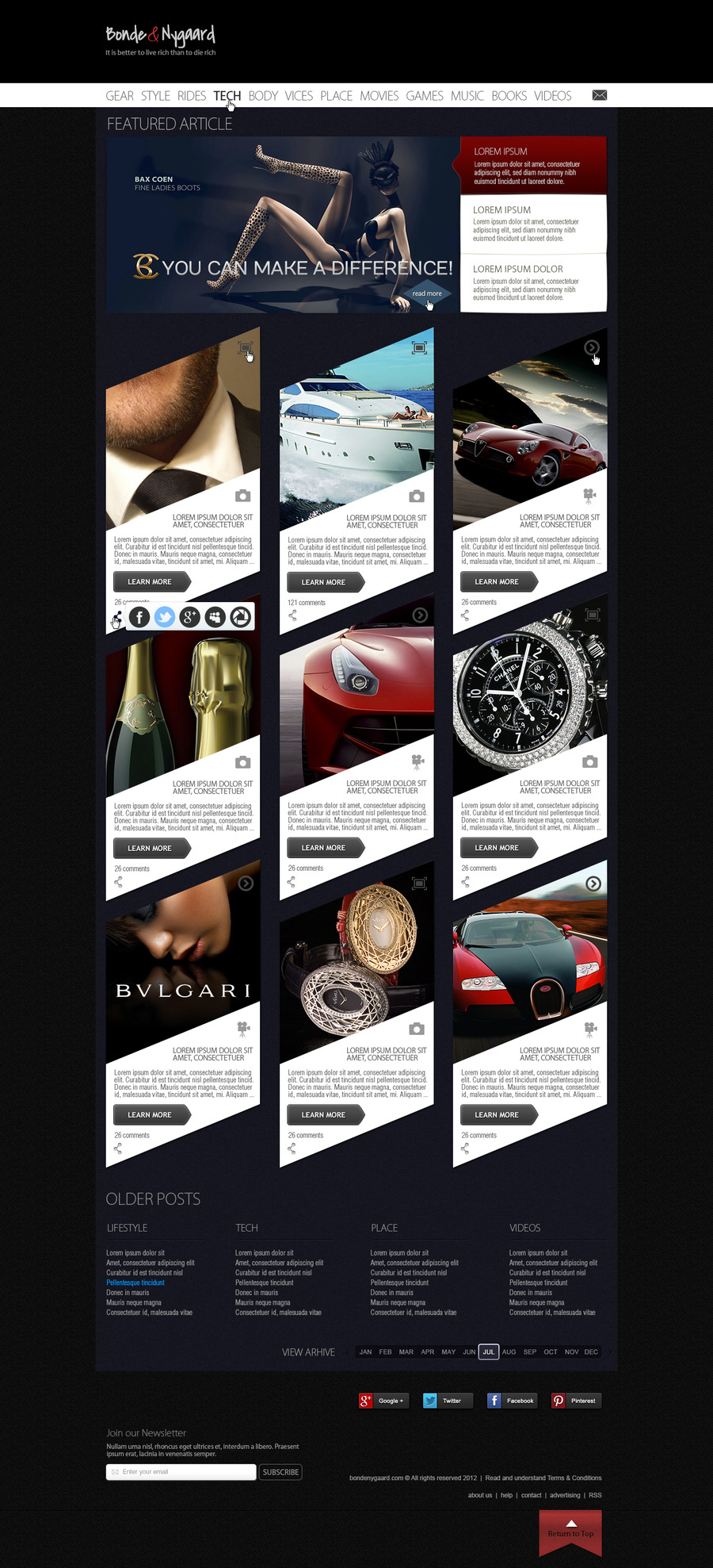A new, on-the-edge concept that pushed the boundaries of design practices, all the while keeping in mind site functionality that adapts to all platforms a user might use to access the site. We're huge fans of implementing clean website code that adapts to all browsers, resolutions, and devices.