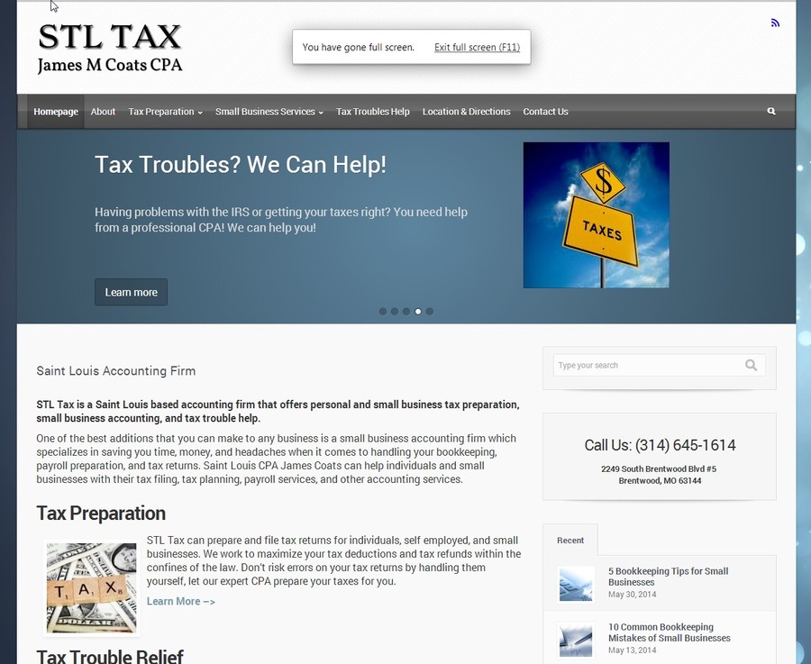 Screenshot of website created for Saint Louis area accounting service STL Tax. Website created using Wordpress. We also provide internet marketing including SEO, social media promotion, and PPC advertising for this business.