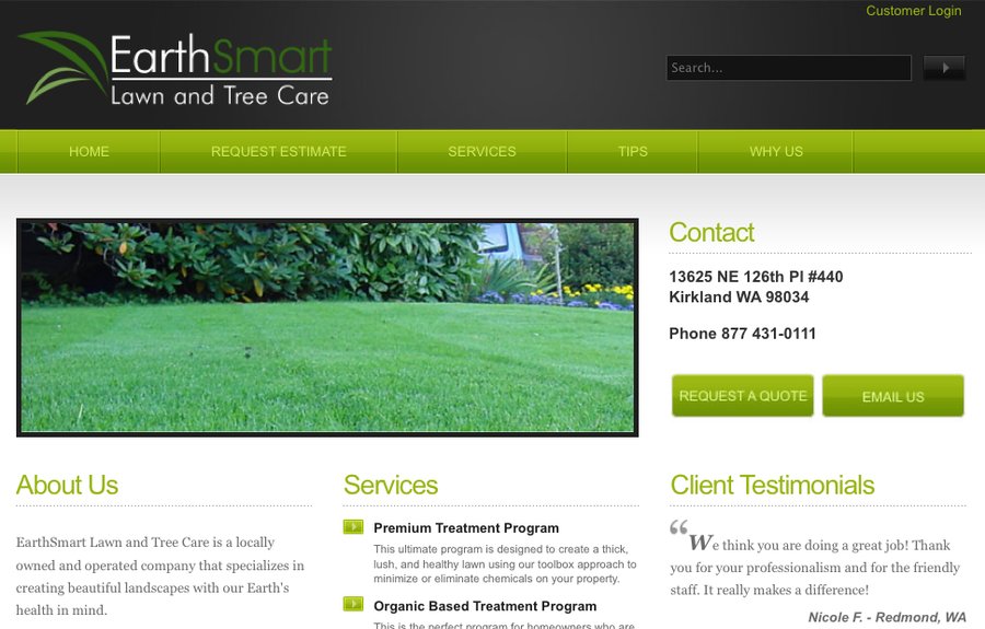 A complete website build and CMS setup for a new Eco Friendly Lawn Care Company, Earth Smart Lawns