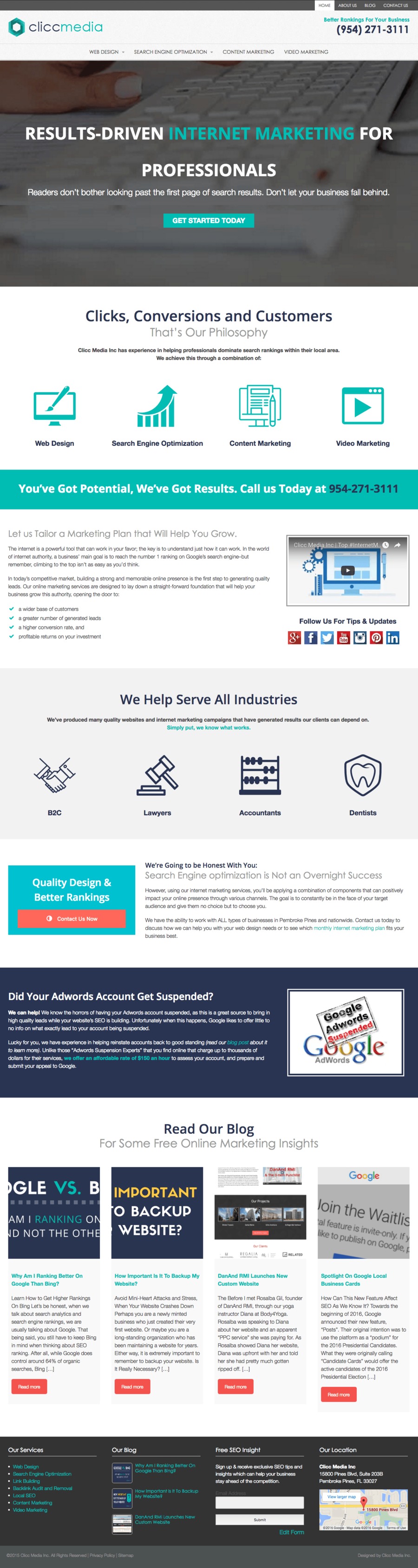 We understand that internet marketing is a long term investment for your company, so we want to make sure you get it right the first time. If you would like to learn more about Clicc Media and what we can offer your business, call (954) 271-3111 to schedule a 1-on-1 consultation with us and to receive a free website analysis.
