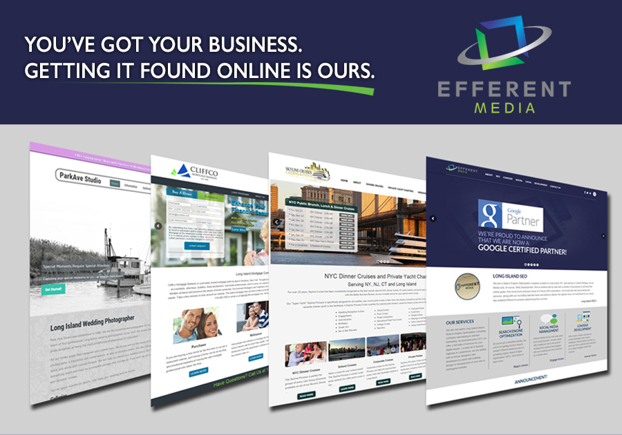 From Web Design and Development to SEO, PPC and Social Media to even Video Production, Efferent Media is ready and willing to help with your entire online presence. Our trained and experienced staff is happy to give your project 110% to make a stunning website that gets found by search engines and is shared on all popular social media platforms. Our firm is one of the few on Long Island to be a certified Google Partner so you know you’re in the best hands as far as your SEO and PPC campaigns. We’ve helped clients like Tragar Oil, Nicolock Paving Stones and Cliffco Mortgage Bankers establish and maintain an online presence that produces results. If you are interested in our first-rate services, call us today at 631-867-0900.