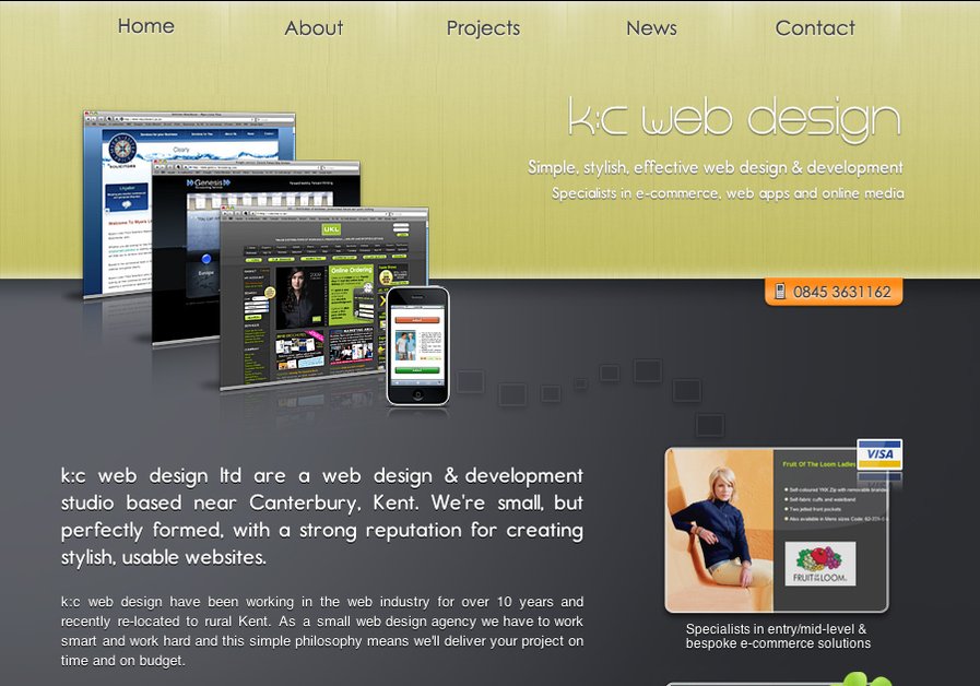 k:c web design ltd are a web design & development studio based near Canterbury, Kent (Not far from London!). We're small, but perfectly formed, with a strong reputation for creating stylish, usable websites. We're specialists in e-commerce - we work with some of the biggest names in the country - and iphone UI development. Please visit our website for more info and examples of our latest projects.