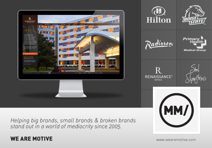 Motive is an award winning design and development "agency" in Boise, ID. Founded in 2005 in Orlando, Florida by three students studying Digital Arts & Design. Fast forward to today and you'll find us helping some of the biggest brands in the world create and deploy content on and offline. We'd love to help you stand out next.