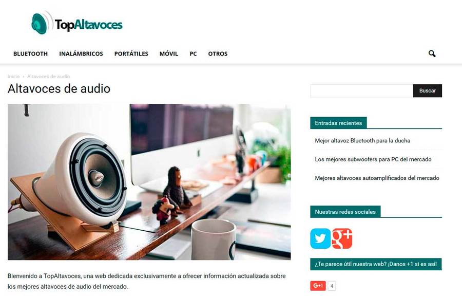 Home de TopAltavoces donde podemos ver las diferentes categorĂas y secciones de la web. Un sitio donde se informa de todos los tipos de altavoces que existen en el mercado.