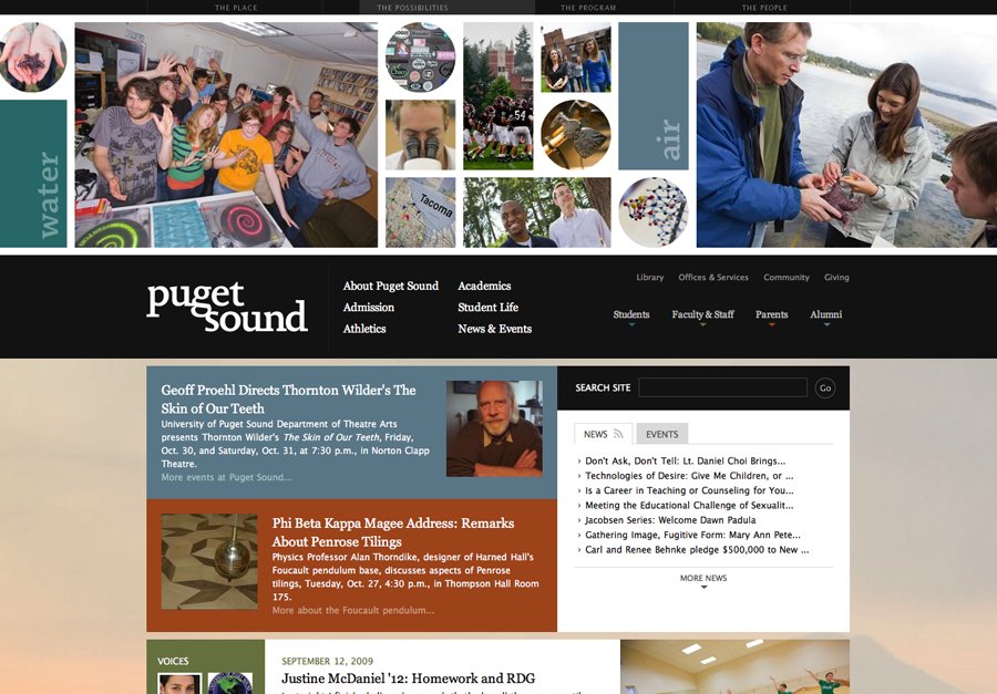 Home page of the University of Puget Sound's newly launched website, pugetsound.edu.