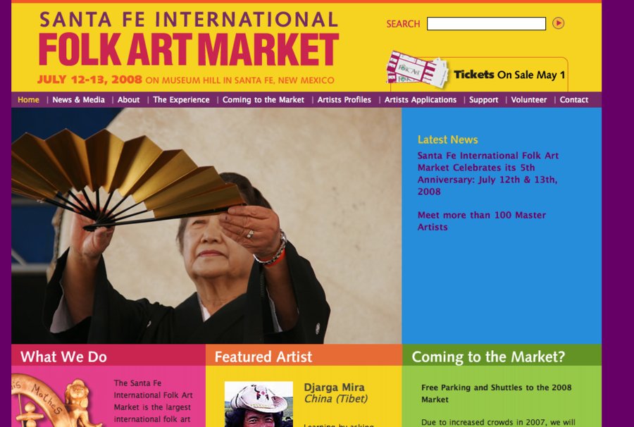 This is a screenshot of our recent site for the Santa Fe International Folk Art Market.