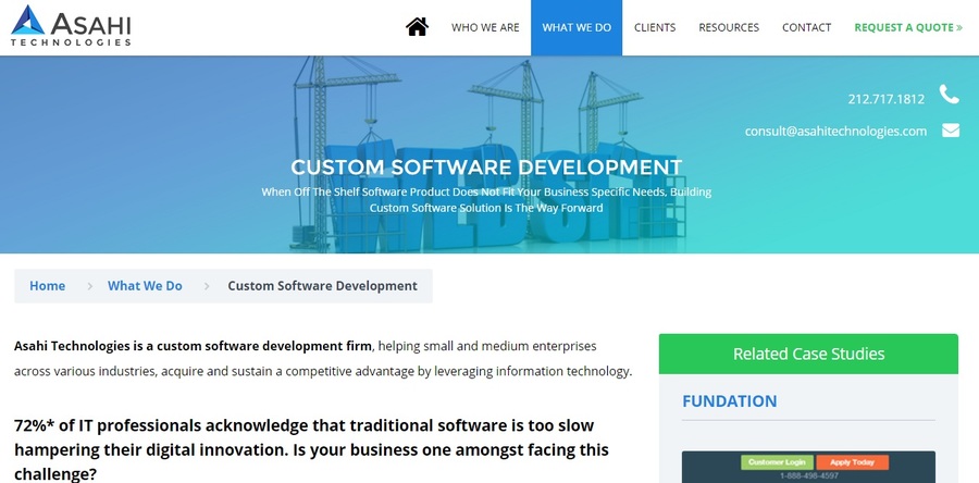 This is the screenshot of our latest page of asahitechnologies.com. Asahi Technologies is a custom software development firm, helping small and medium enterprises across various industries, acquire and sustain a competitive advantage by leveraging information technology.