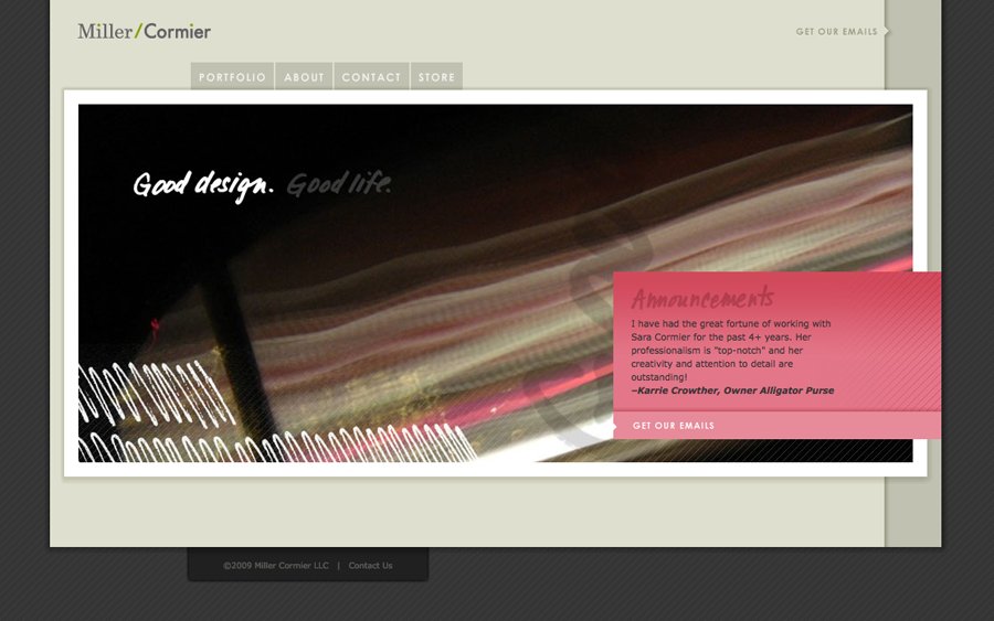 Miller/Cormier is a collaboration between Sarah Miller (the interactive designer) and Sara Cormier (our print and advertising expert). We first met while in school at UC in the DAAP program. 10 years later… we're still working hard at being designers and have been collaborating on all sorts of work.