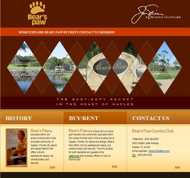 This a screenshot of the homepage of our most recently completed project, for Bear's Paw Country Club.
