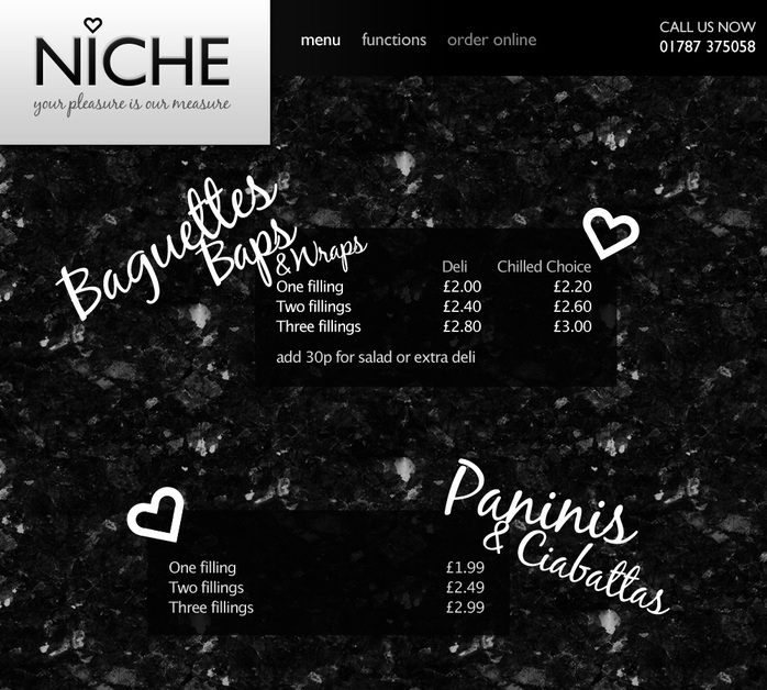 Concept of a sandwich shop's website. Designed to reflect the store's interior design.