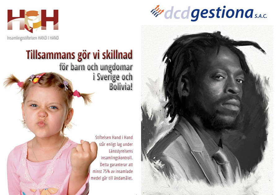 Detta är ett exempel på tre olika projekt: en broschyr, en logotyp och en illustration.