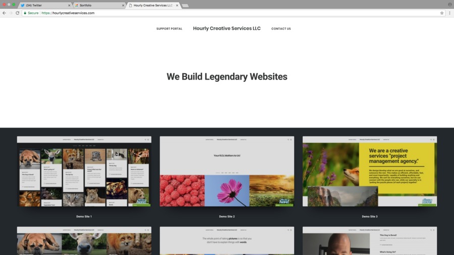 This is a screenshot of our homepage, which shows on it screenshots (that link to demo sites we've built).