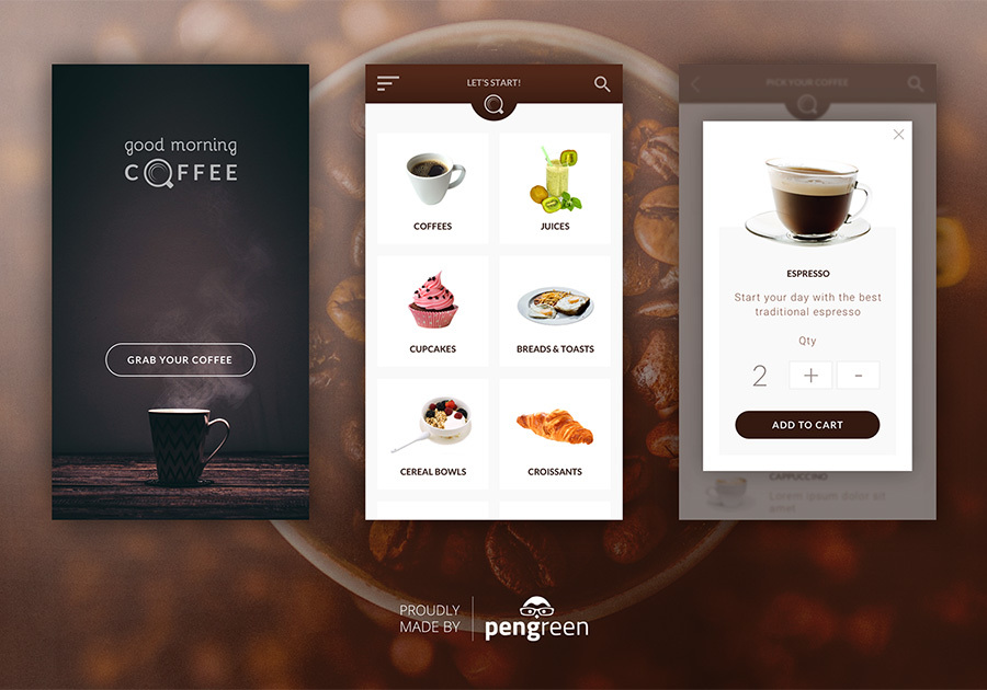Mobile design for a menu app.