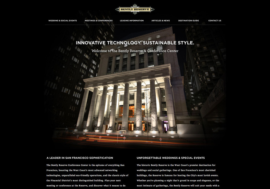 This is the latest homepage of my redesign for the bentlyreserve.com; built to target their wedding, event & real estate ventures, by complimenting and modernizing a classical style.