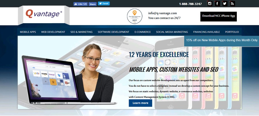 Q-vantage is California based fast growing Website and Mobile application IT firm, which has been serving their customers with reliable services since 2004. Qvantage specialize in mobile app development, website development, E-commerce, web apps, SEO, & mobile marketing. We offer fast delivery and instant consultation solutions to our clients at affordable price. Our team has passionate technology experts those work according to your needs, from responsive website to mobile application. We Creates long-term partnerships with our customers by putting forth value propositions and by delivering customized solutions. We also serve in Riverside, Corona, Los Angeles, Upland, Orange County, Irvine, Anaheim, Costa Mesa, Newport Beach, Pasadena, and San Diego.