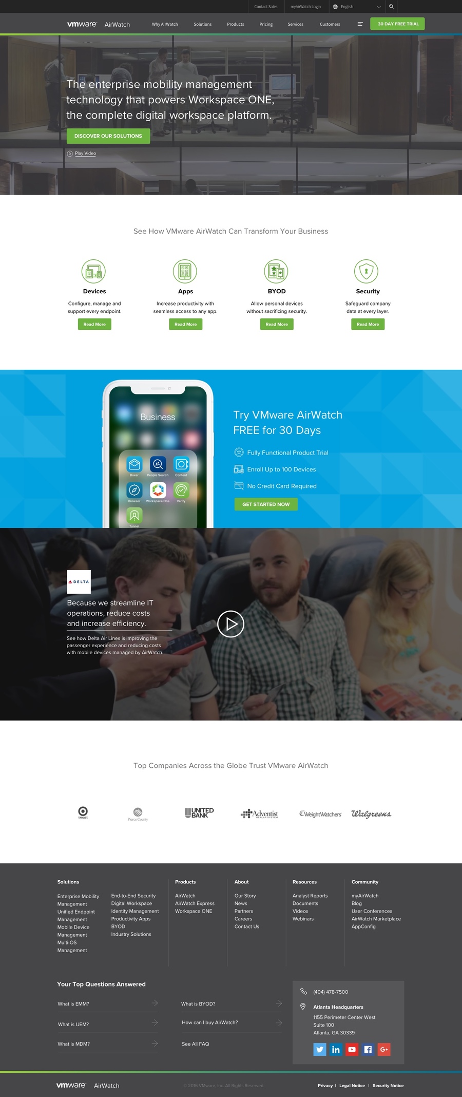 This is a screenshot of the homepage redesign of VMWare / AirWatch