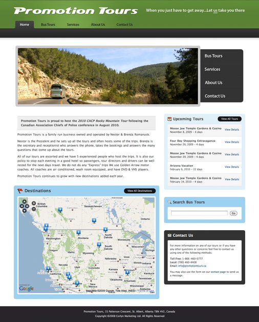 Website design and custom content management system for Alberta-based bus tour company Promotion Tours—http://promotiontours.ca.