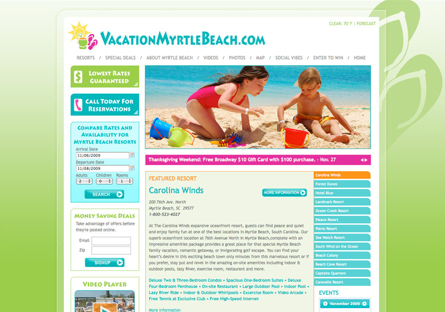 Our latest redesign for vacationmyrtlebeach.com. An information and transaction site for multiple resorts in Myrtle Beach, SC.