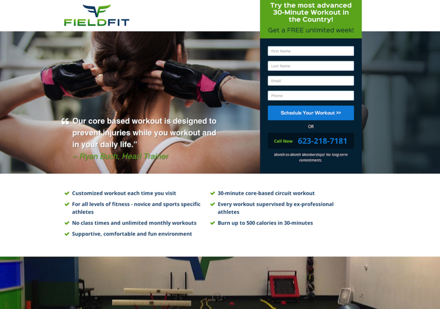 Homepage design for an exciting new fitness training program created by a former pro baseball player in Arizona.