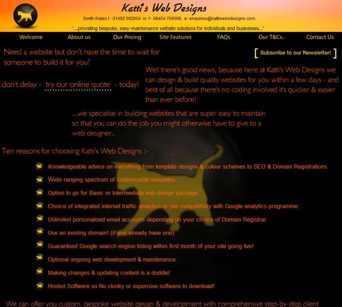 Katti's Web Designs is an innovative business offering bespoke yet affordable easy-to-maintain, non-techie website solutions to clients throughout North Wales and beyond.