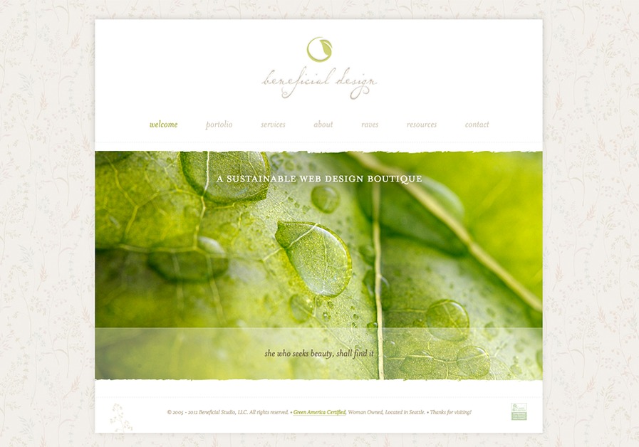 Beneficial Design provides simple, hand-crafted web design for women artists, food bloggers, writers, environmentalists, and entrepreneurs in Seattle, the Puget Sound and beyond. Inspired by your remarkable stories, we organize and refine your initial ideas to form a presence and identity that best reflects you. Your site will be easy to use, welcoming and uniquely designed to showcase your profession. Your home online.