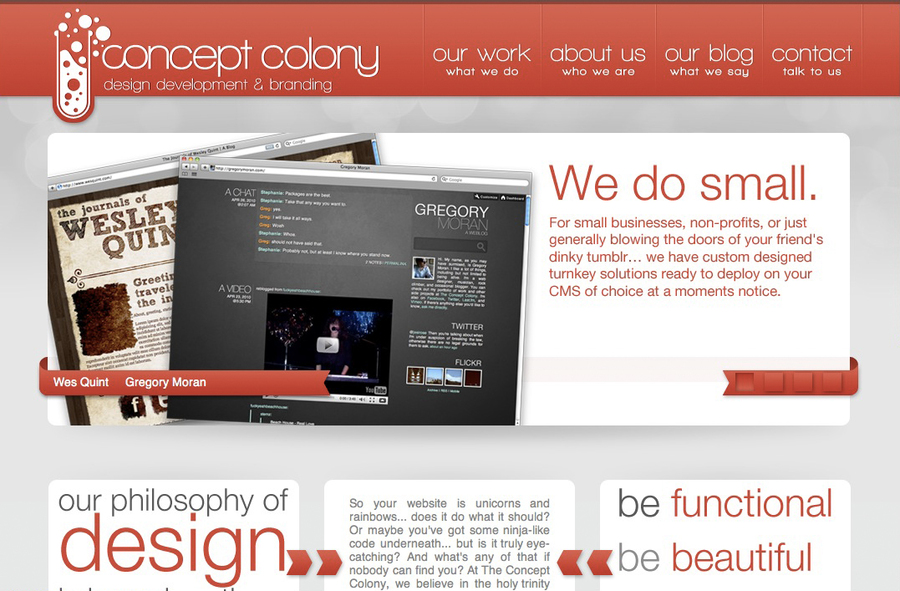At The Concept Colony, we believe in the holy trinity of web design: Be Functional, Be Beautiful, Be Visible. Our passion is comprehensive web solutions, and they require their utilitarian pieces as much as their jaw-dropping UI/UX and search visibility.