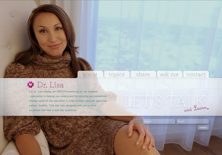 Homepage of Dr. Lisa's educational website, an OB/GYN working in LA. // doctor-lisa.com