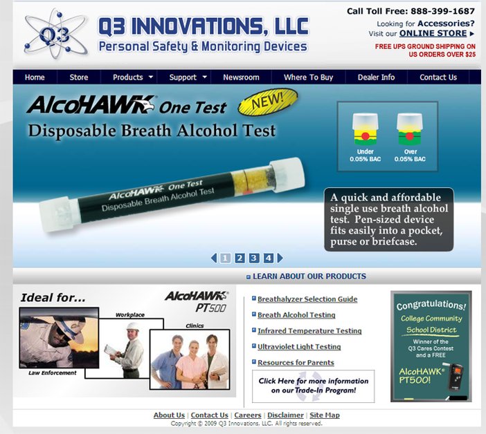 This is a screenshot of Q3 Innovations' corporate site - we design and maintain this site as well as their online store.