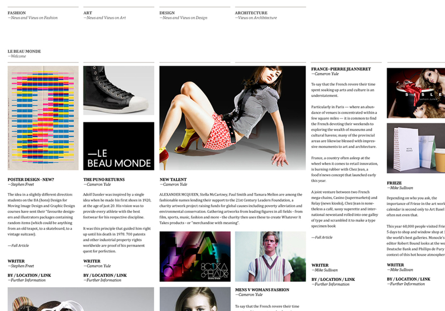 Online fashion, art and design showcase journal. Established a brand name, marque, literature, promotional marketing and website.