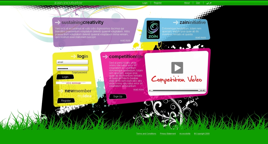 Screenshot [homepage] of an Incubator Website targeting university students which aims at sustaining creativity and innovation.