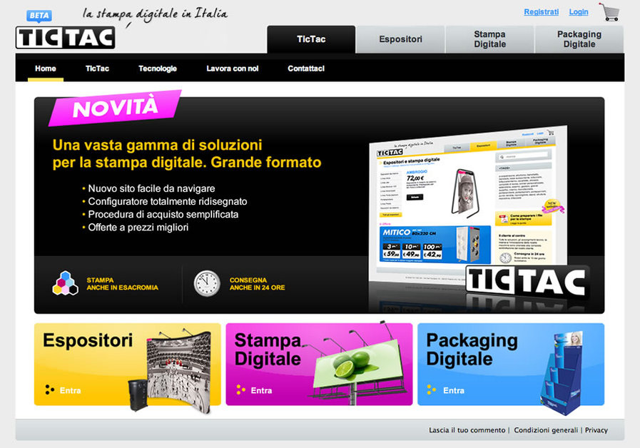 Restyling della brand image (logo e stili di comunicazione) per tictac srl, stampa digitale online. Graphic User Interface e configuratore.