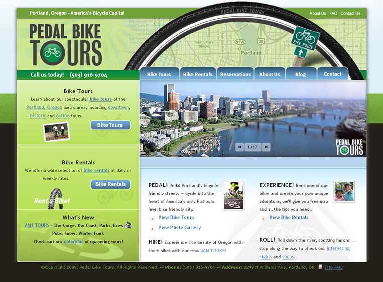 Avtec Media handled web site design and development for Pedal Bike Tours, a bicycle rental and touring company in Portland, Oregon.