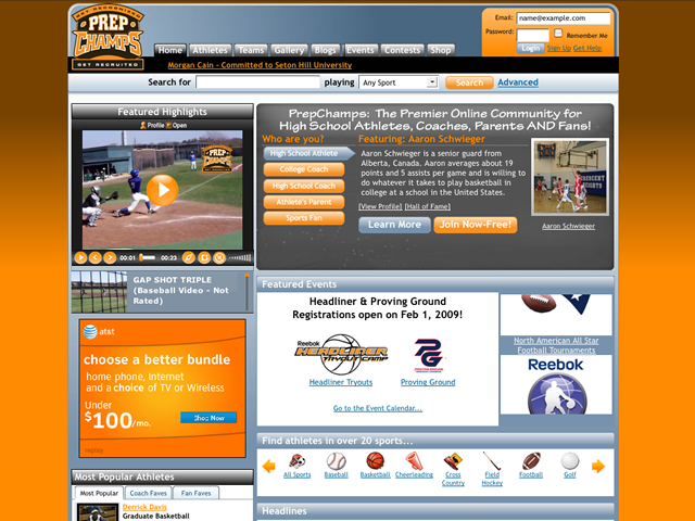This is a screenshot from PrepChamps, a social networking high school recruiting web app.
