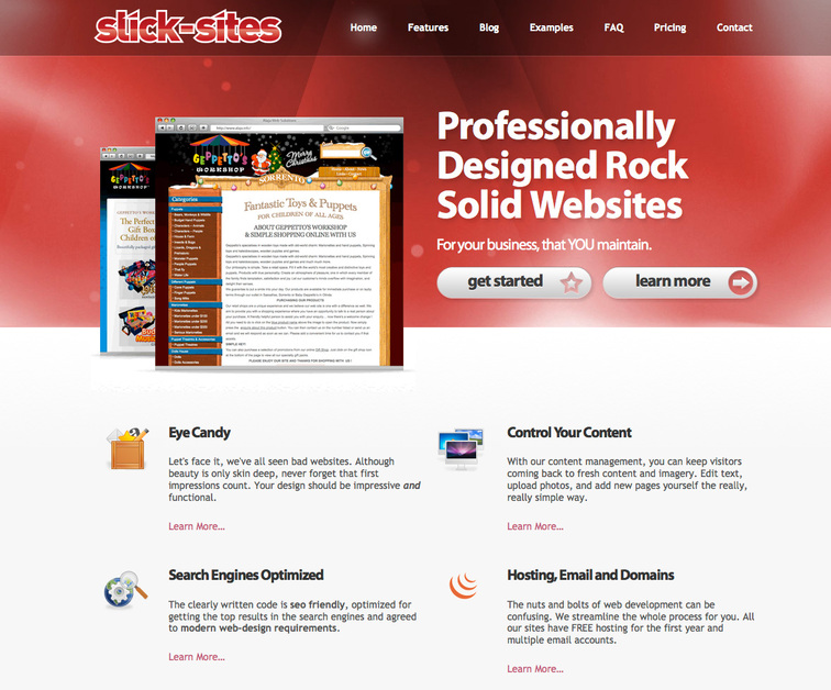 Slick-Sites create professionally designed rock-solid websites that YOU maintain. We can handle all the registration, hosting and content management of your new website. See our site for pricing plans.