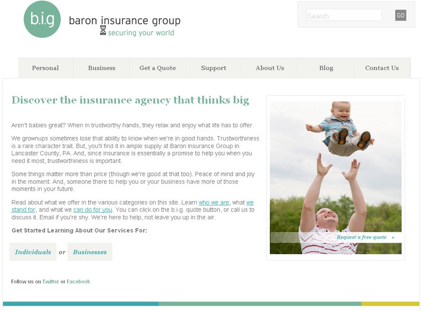 Home page for complete site redo, copywriting, and search engine optimization campaign for an independent insurance agency.