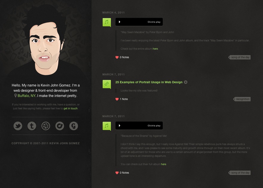 Hello. My name is Kevin John Gomez. I'm a web designer & front-end developer from Buffalo, NY. I make the internet pretty.