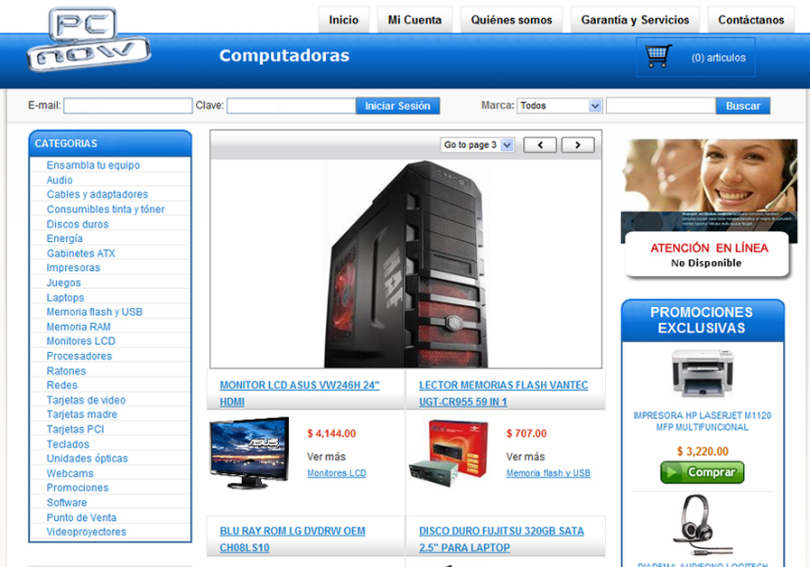 E-commerce website of PC NOW, the the bigger hardaware and software retailer in Acapulco