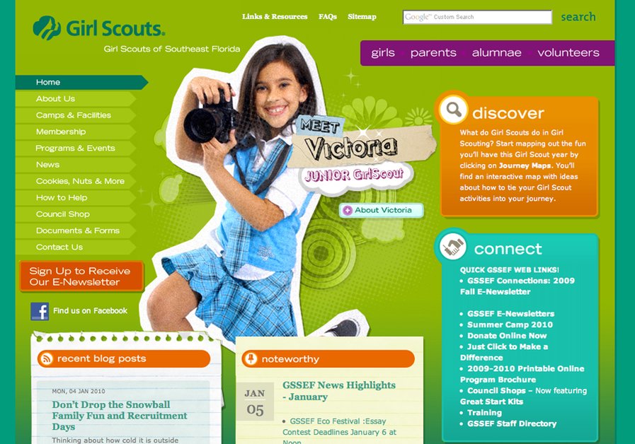 Screenshot from our work for the Girl Scouts of Southeast Florida. The site is powered a robust custom-built CMS.