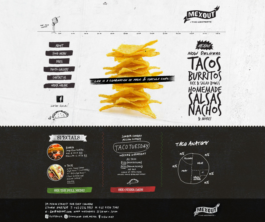 Website design with CMS for Mexican restaurant in Singapore.